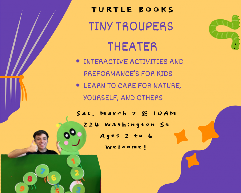Read-aloud, sing-along, and arts ‘n crafts for toddlers through age 5.  No advance registration required.