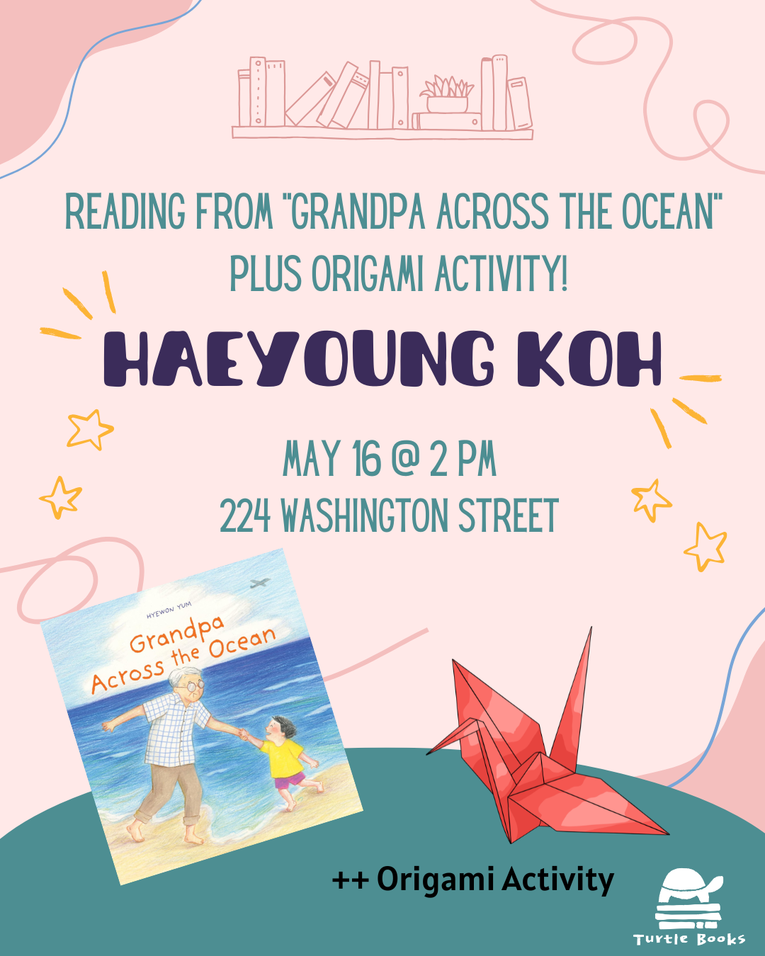 Haeyoung will be reading from Grandpa Across the Ocean in both English and Korean. Follow up with fun originam activity. |