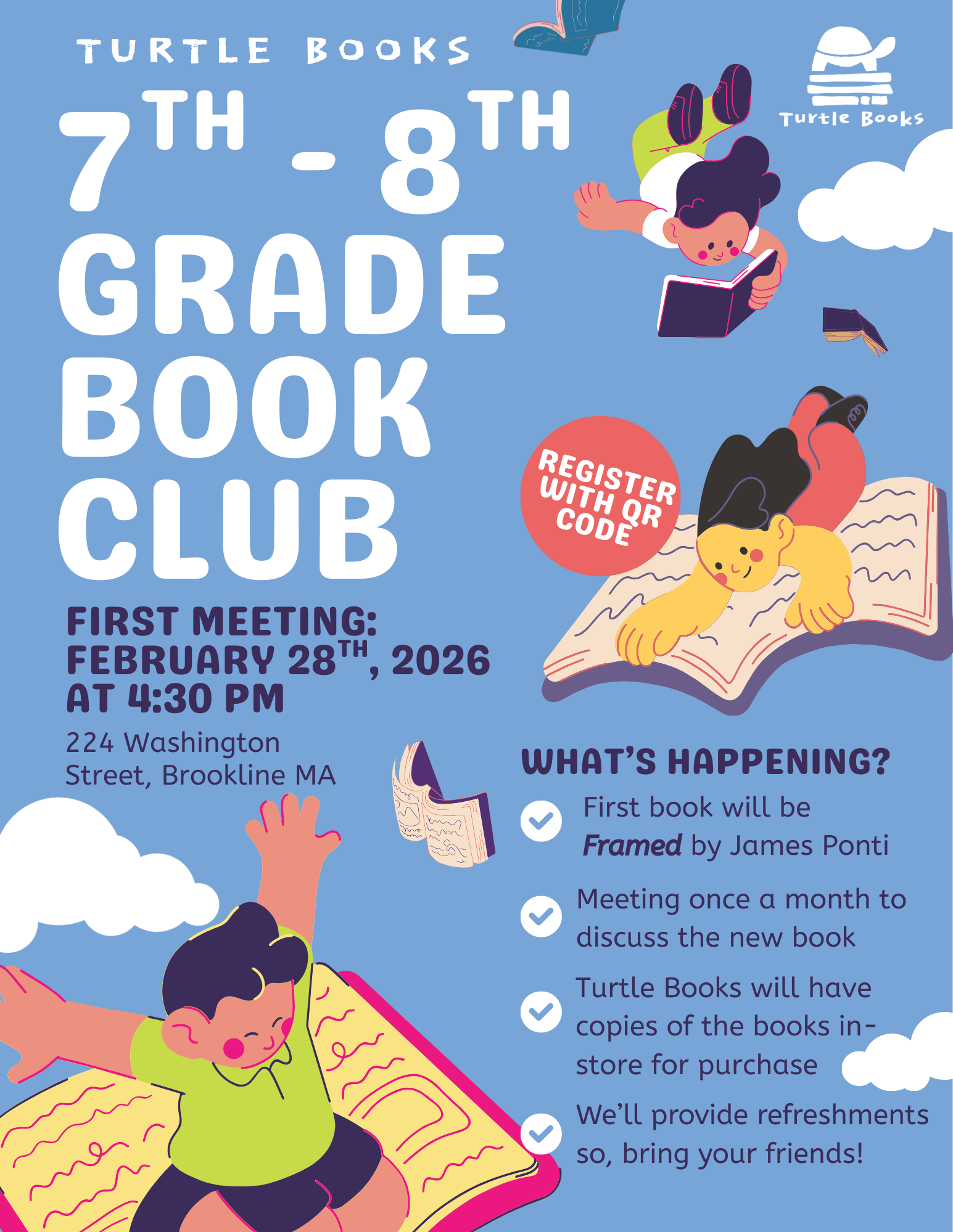 Middle Grade Book Club for Grades 4 – 6 Feb 28 1:00 pm - 2:00 pm Middle Grade Book Club for Grades 4 – 6
